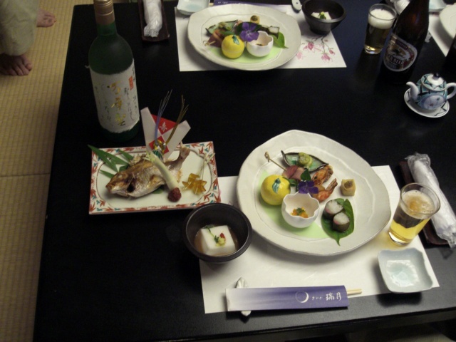 懐石料理みたいになっていて、ゴマ豆腐やカモ肉